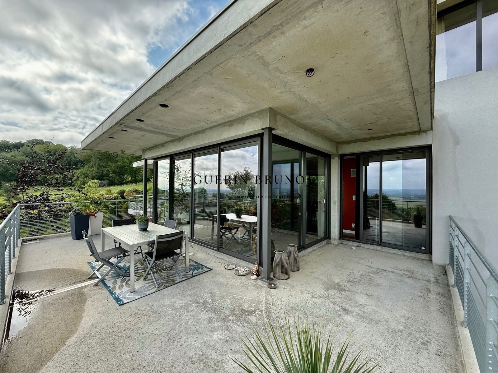 À vendre – Villa d’architecte avec vue exceptionnelle – Bergerac Sud Idéalement située à quelques minutes du centre de Bergerac et de toutes commodités, cette villa d’architecte contemporaine bénéficie d’un environnement privilégié, mêlant proximité des commerces, des écoles, de la gastronomie locale… et vue panoramique imprenable sur les coteaux Nord de Bergerac. Une architecture lumineuse et ouverte sur l’extérieur Édifiée sur trois niveaux, cette villa, baignée de lumière grâce à ses larges ouvertures, offre une qualité de vie remarquable, dans un cadre soigné et sans travaux à prévoir. Composition : Rez-de-chaussée : Entrée sur séjour avec cuisine ouverte entièrement équipée, Salon avec insert double paroi, Deux chambres, Salle d’eau, WC séparé, Accès à une vaste terrasse panoramique. À l’étage : Deux chambres, Deux dressings, Salle de bains et salle d’eau. Rez-de-jardin (niveau semi-enterré) : Buanderie, Garage, Cuisine d’été, Remise, Bureau (ou chambre). Ce niveau offre de nombreuses possibilités d’aménagement : logement indépendant, espace de loisirs, salle de sport, etc. Prestations techniques : Pompe à chaleur, Micro-station d’épuration, Eau de ville, Double vitrage, Toits plats, Terrain clos avec portail électrique. Prix : 659 000 € HAI DPE : A Un bien rare, sans travaux à prévoir, où vous pourrez poser vos valises en toute sérénité. Dossier complet sur demande. À découvrir rapidement !
